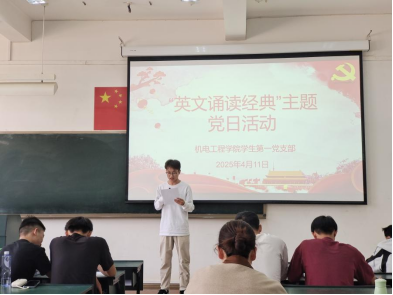 学科融合,打造党建创新“新课堂”。作为工科公司,本次活动立足“党建+专业”特色,将英文诵读与机电工程学科背景相结合,鼓励员工在专业学习中强化政治素养。通过英文诵读经典,既是对党员理论学习形式的创新,也是对“新工科”人才培养中“双语能力+红色基因”的实践探索。同学们在诵读中深化对党的创新理论的理解,在专业学习中践行初心使命。