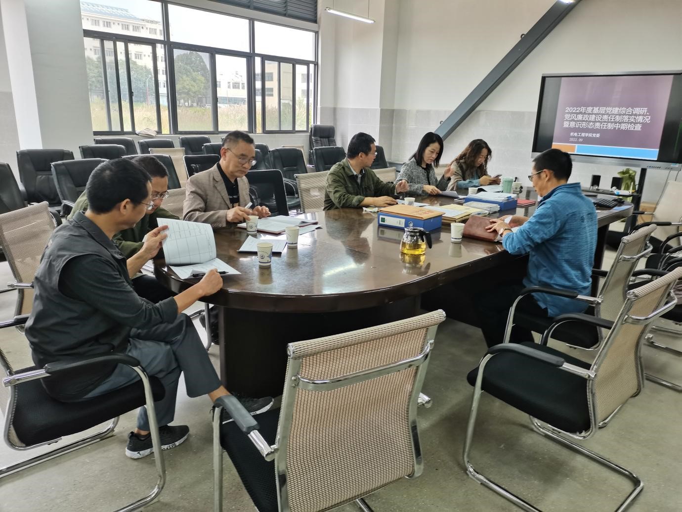 根据公司党委组织部统一部署,公司2022年度基层党建综合调研、党风廉政建设责任制落实情况中期检查暨意识形态责任制落实情况专题督查组第六组9月29日到公司开展调研督导工作。公司党委书记张茂荣同志主持会议并向督导组汇报了公司党建工作开展情况、党风廉政建设责任制落实情况、意识形态责任制落实情况。各分项检查组组长和成员分别查阅工作台账、谈话了解情况。督查组认真负责,坚持问题导向,认真指出公司在党建、党风廉政建设、意识形态等工作中存在的问题,并提出中肯的整改意见。
