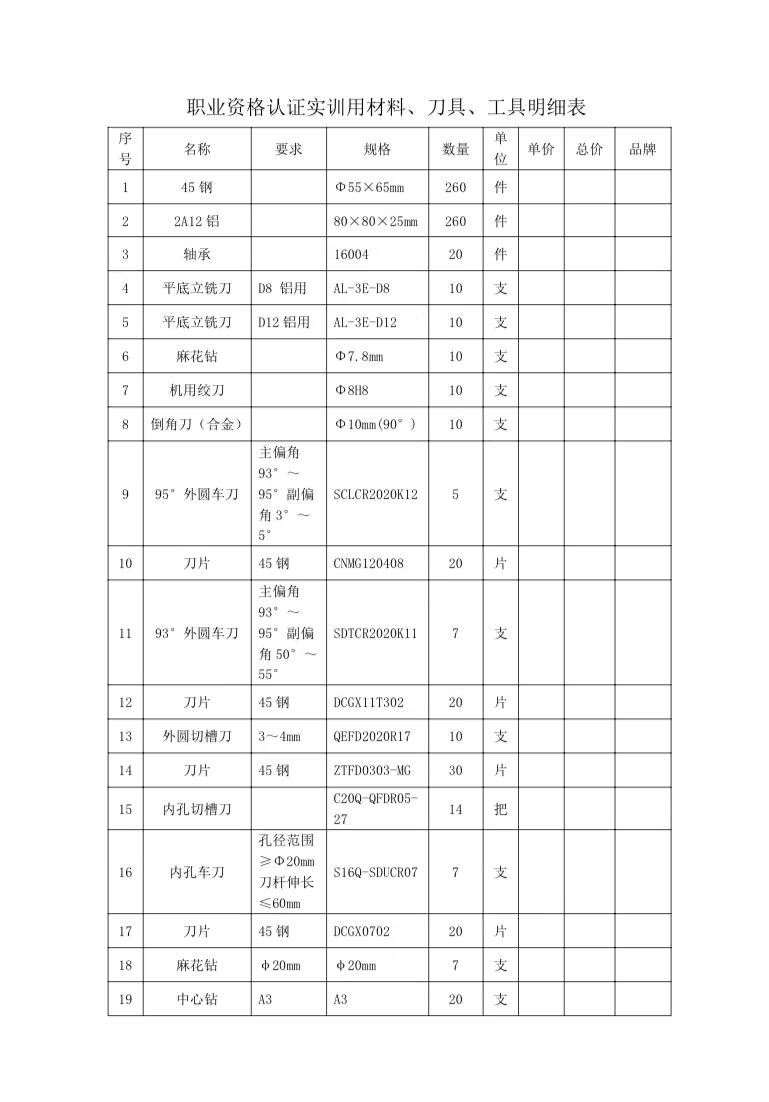 职业资格认证实训耗材采购询价公告