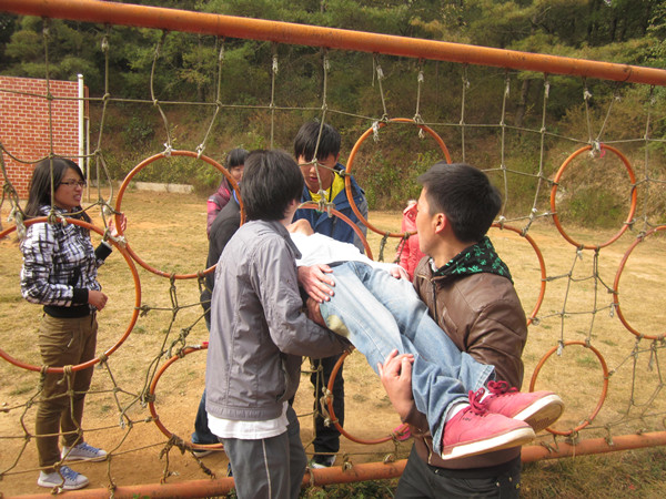 在每一个活动环节中,每个队伍都充分发挥聪明才智,团结协作,奋发向上,不断进取,超越自我的精神。尤其是在“高空断桥”这一环节中,冲击心理防线,挑战自我极限,在恐惧与渴望中每个队员都完成了心灵的蜕变。在“翻越铁墙”一环节中,充分发挥团结协作与顽强拼搏的精神,所有人付出了血汗与泪水,才换取了最后的胜利。