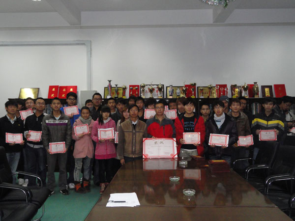 在夜色的笼罩和灯光映射下, IT文化节颁奖仪式正式开始,王老师和毕涛为参加本届IT科技文化节的所有获奖选手颁奖并合影留念。在他们脸上流露出来了胜利的喜悦,他们是我们追求的目标,相信只要肯下功夫,花时间,胜利属于那些准备好了的人。本届IT科技文化节共有7个项目,分别是CS,DOTA,澄海3C,CAXA,金山打字比赛,办公软件office一级C类模拟。本次大赛在很大程度激发我系同学崇尚科学、勇于创新的精神,提高了同学们的科技创新意识,推动前沿科技知识的学习和传播,促进科技成果的推广和应用,树立老员工正确的校园IT理念,丰富校园科技文化生活。