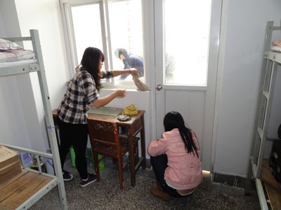 我们全体员工会的干部干事都非常热心的帮助云南省昆明市盲哑公司的员工打扫卫生。教他们叠被子、抹窗户以及一些生活中的小技巧。他们把自己想成聋哑盲的同学,然后想出良好的办法做一些自己可以做的事情。并与他们聊聊生活中的事情,让他们觉得我们会关注他们,不会歧视他们,让他们要有自信!找到自己在社会中的价值!