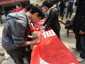 2012年3月26日中午,自机公司发起一场以“节水抗旱,人人有责”为题的签名活动,活动地点选择在了润泽院食堂门口。