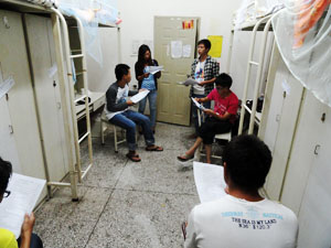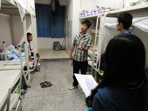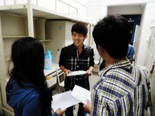 晚上8点30分,在得到宿管的允许后,我们纷纷前往新生的寝室,一间一间的敲门。这次探望新生主要是为他们强调一些安全问题和通知一些事情: