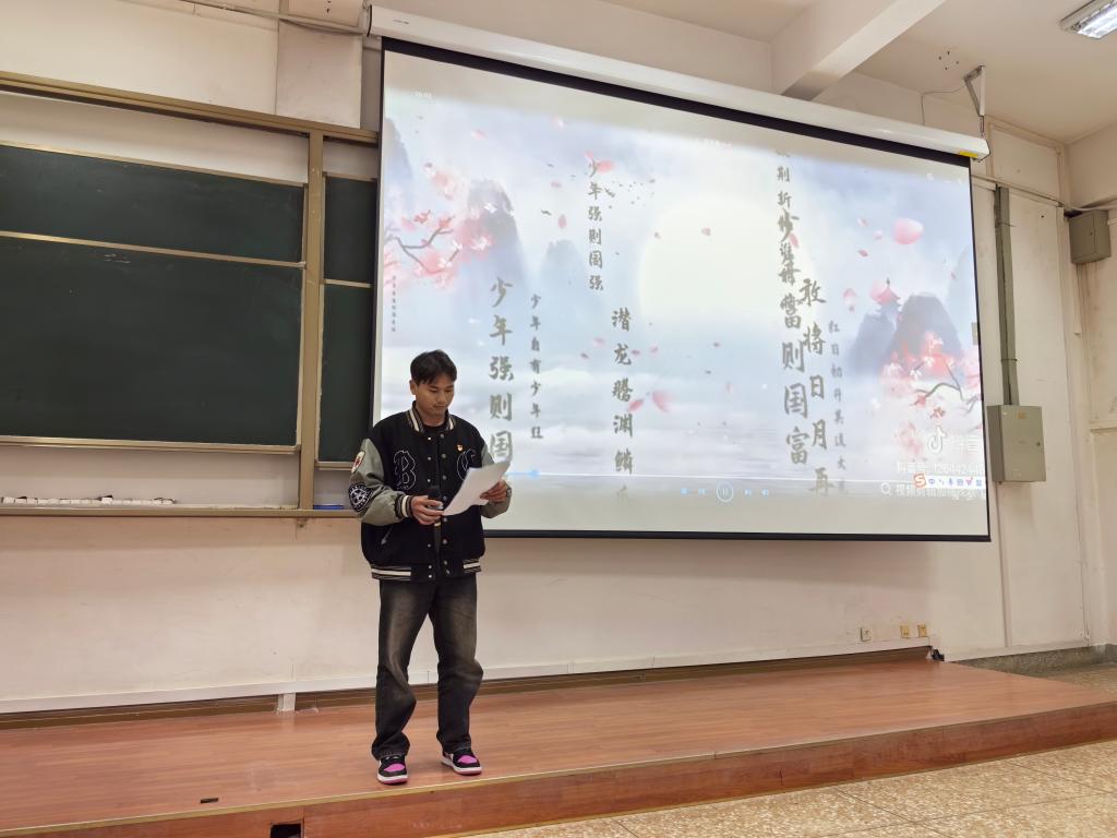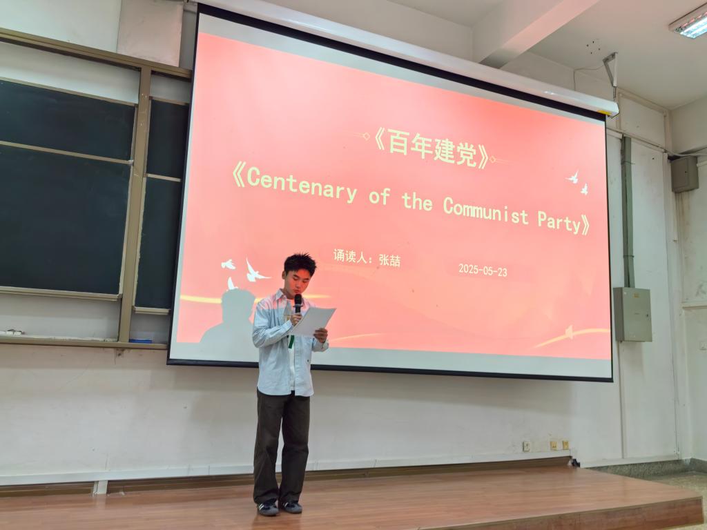 活动由周昱蒙同志和张涛同志共同主持,通过中英文交替的双语形式串联全场。主持人以流畅的英文与中文相互切换,既凸显语言艺术的多元魅力,又拉近与现场观众的情感共鸣。参赛作品聚焦《The Youth of China》、《My Motherland》等经典篇目,选手们通过抑扬顿挫的英文诵读,将红色文化精髓转化为跨越语言的艺术表达,既展现了中华文明的深厚底蕴,也传递了新时代青年对文化传承的自觉与担当。